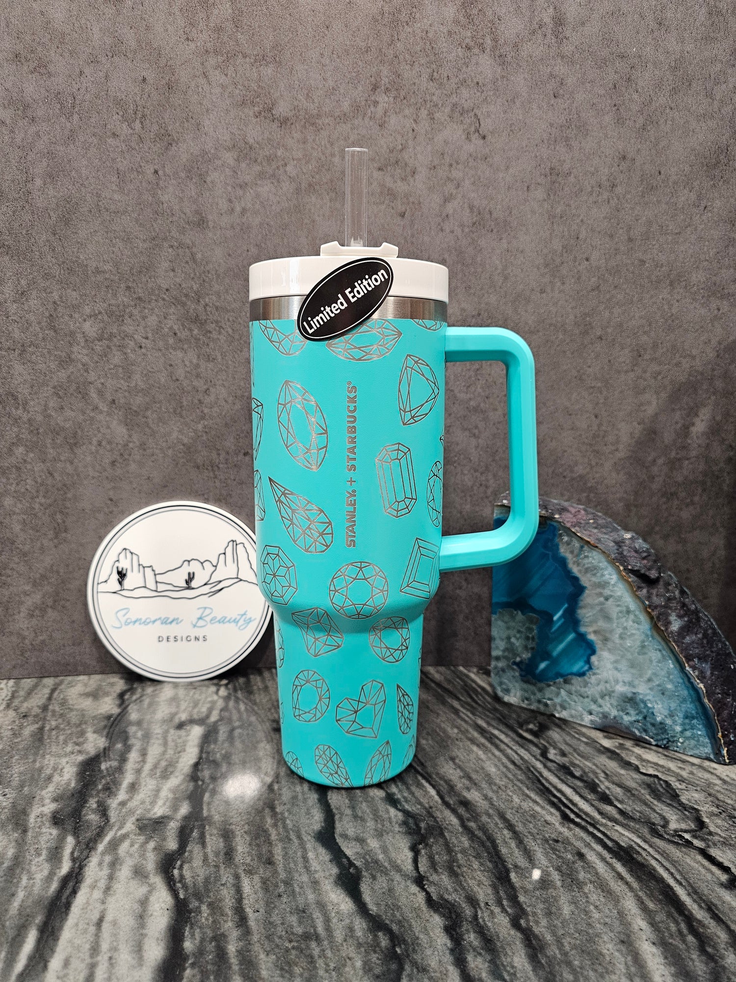 Created for the Tiffany blue colored cups, who doesn't love Diamonds? Put on any color and accessorize.