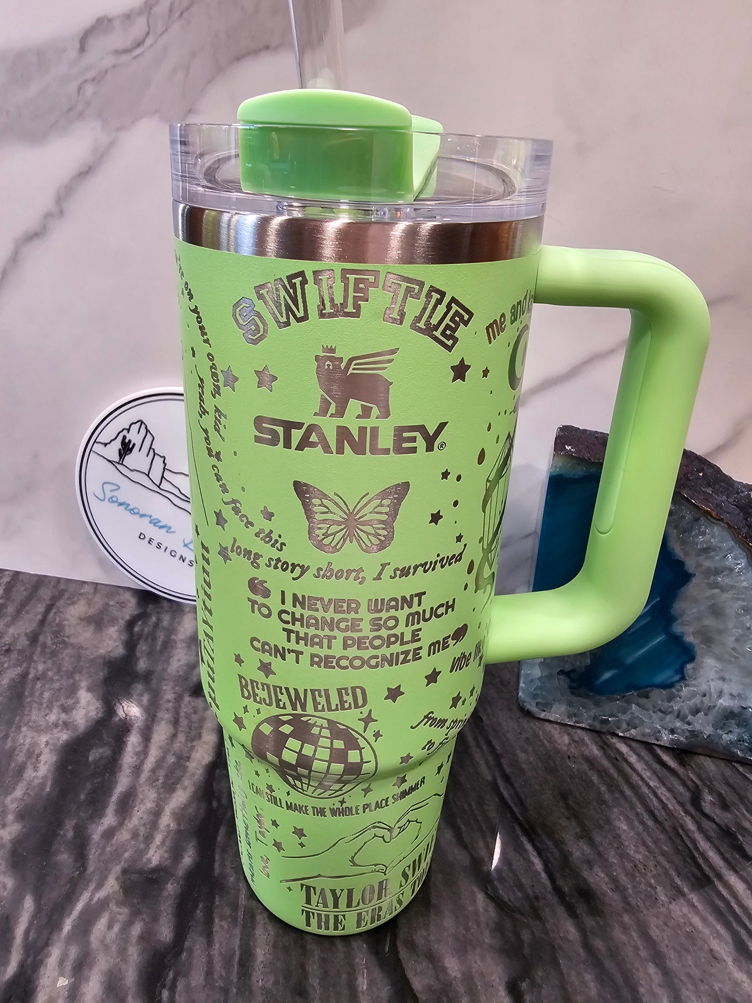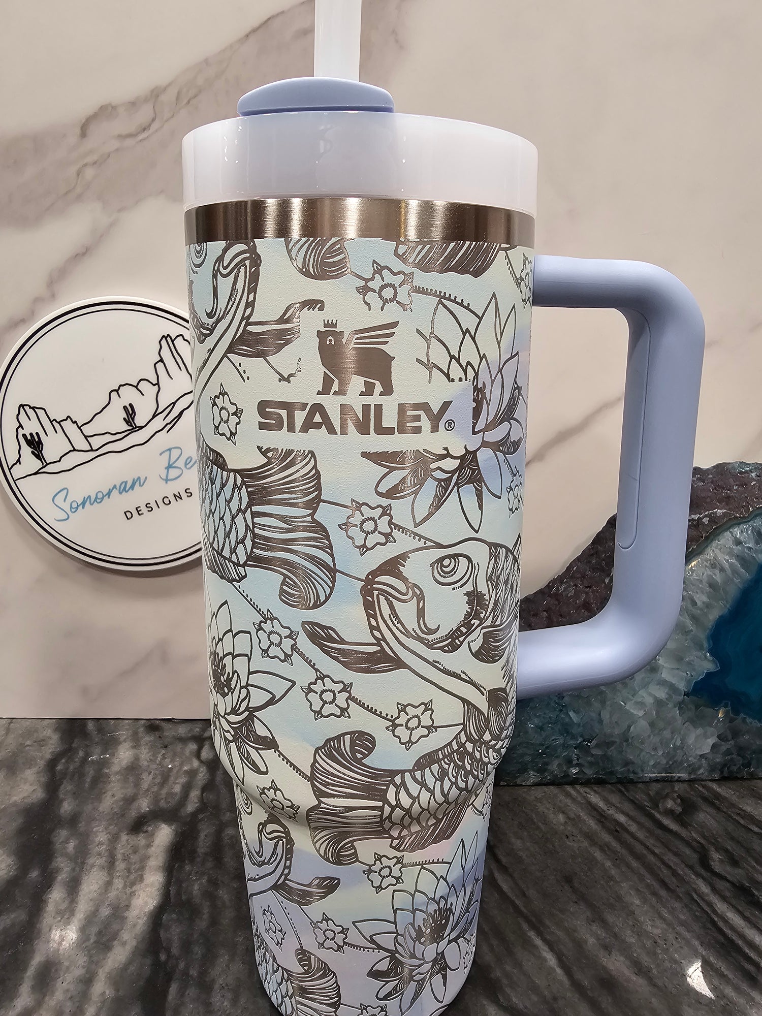 A summer staple. Built as a full wrap around the Stanley logo, the design makes everyone smile. This design is by Robin Faro from of ThatLaserLady.