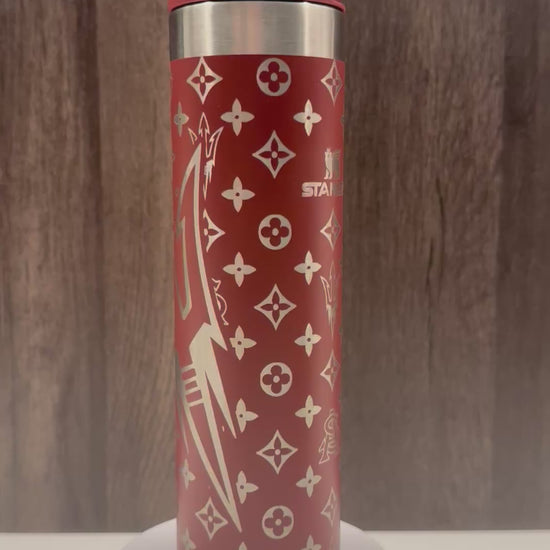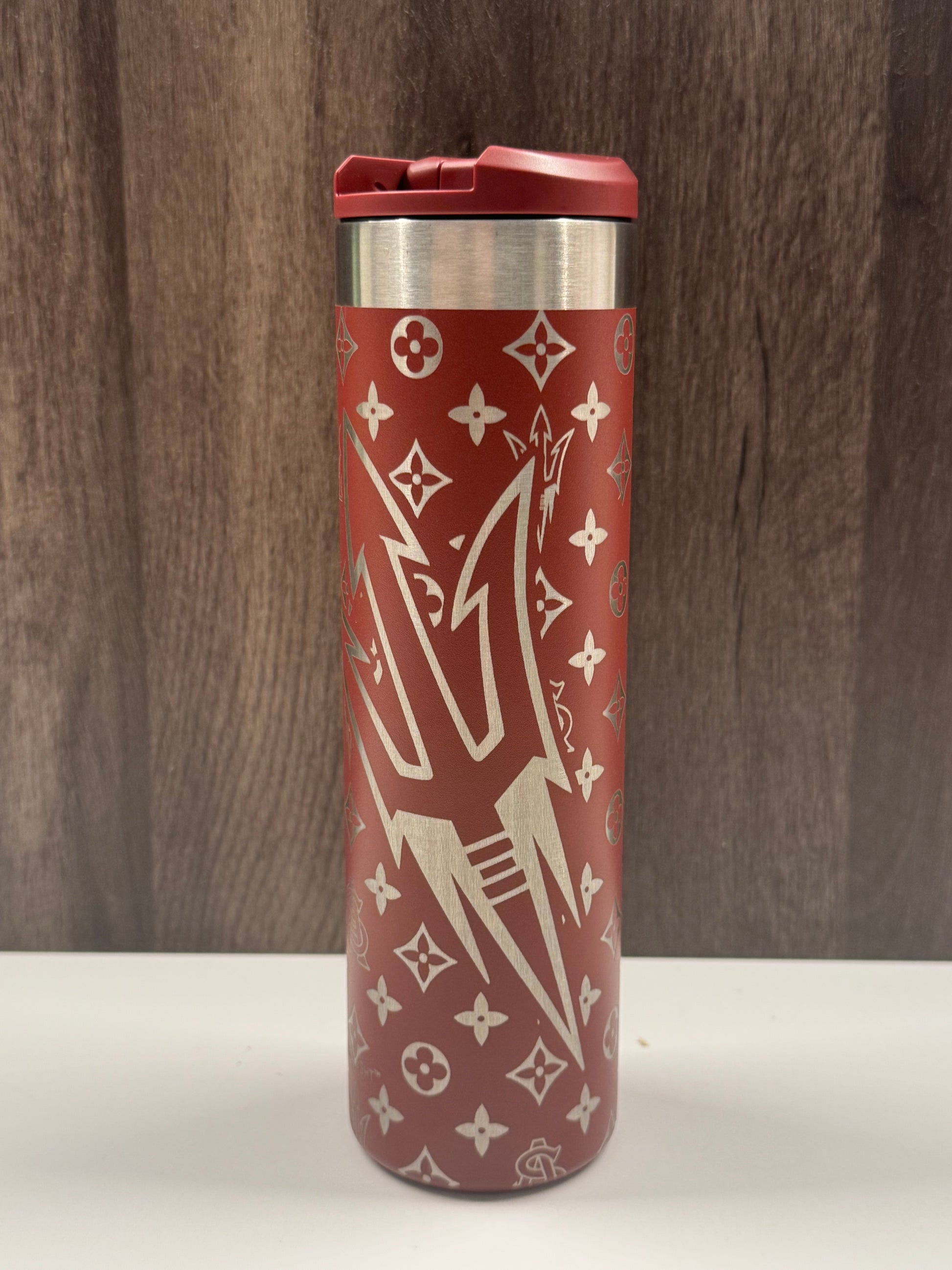 Authentic, engraved name brand tumbler, no special care needed, follow manufacturer recommendations.