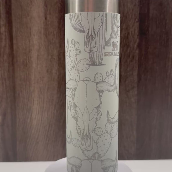 Cow Skull & Cacti on Grey Shimmer 20oz Transit Bottle
