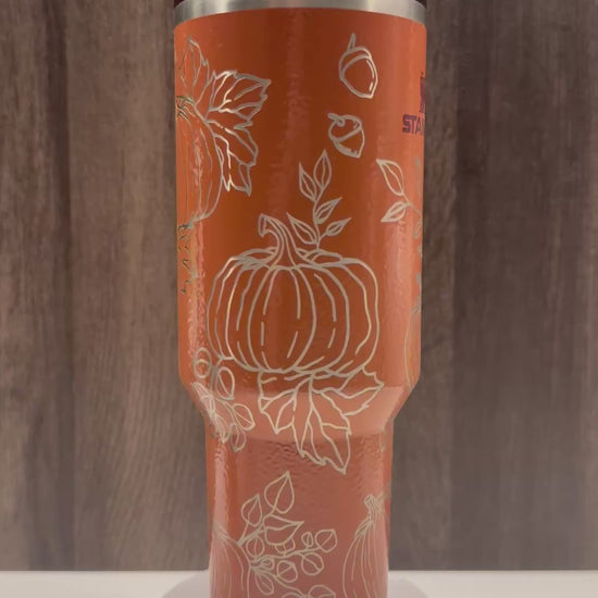 Fall Pumpkins on Orange Hammertone 40oz Stanley