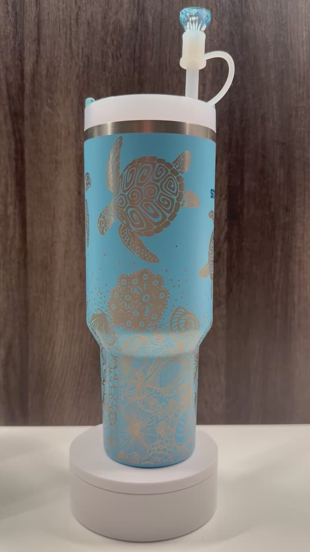 Authentic, engraved name brand tumbler, no special care needed, follow manufacturer recommendations.