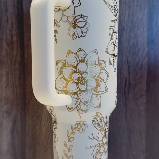 Succulents on Cream Moon 40oz Stanley ProTour